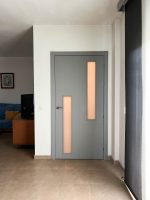 Puerta interior en block de aluminio visualmente identicas a las de madera, con cerradura de imán que amortigua el golpe y ruido y resitente a los factores ambientales más comunes que estropean la madera.