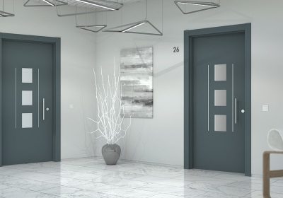 La hoja de nuestras puertas de interior estan compustas por MDF en el interior, el perímetro con tablero marino, el exterior con xapa de aluminio lacado de 1 mm, y todo ello termosellado para evitar cualquier tipo de filtración, y así mantener tus puertas impecables.